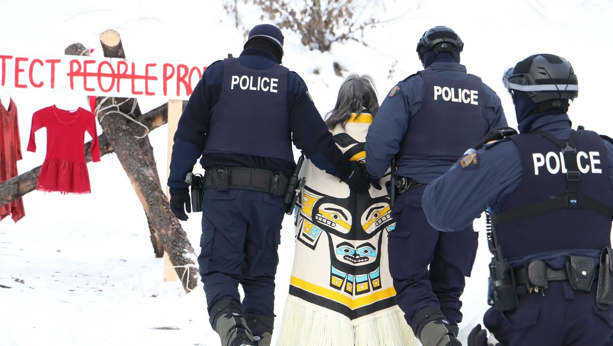 The Royal Canadian Mounted Police violently stormed in to arrest 29 people who rejected the building of a 670-kilometre pipeline that would devastate Wet'suwet'en territory (SpringMag, 2021).