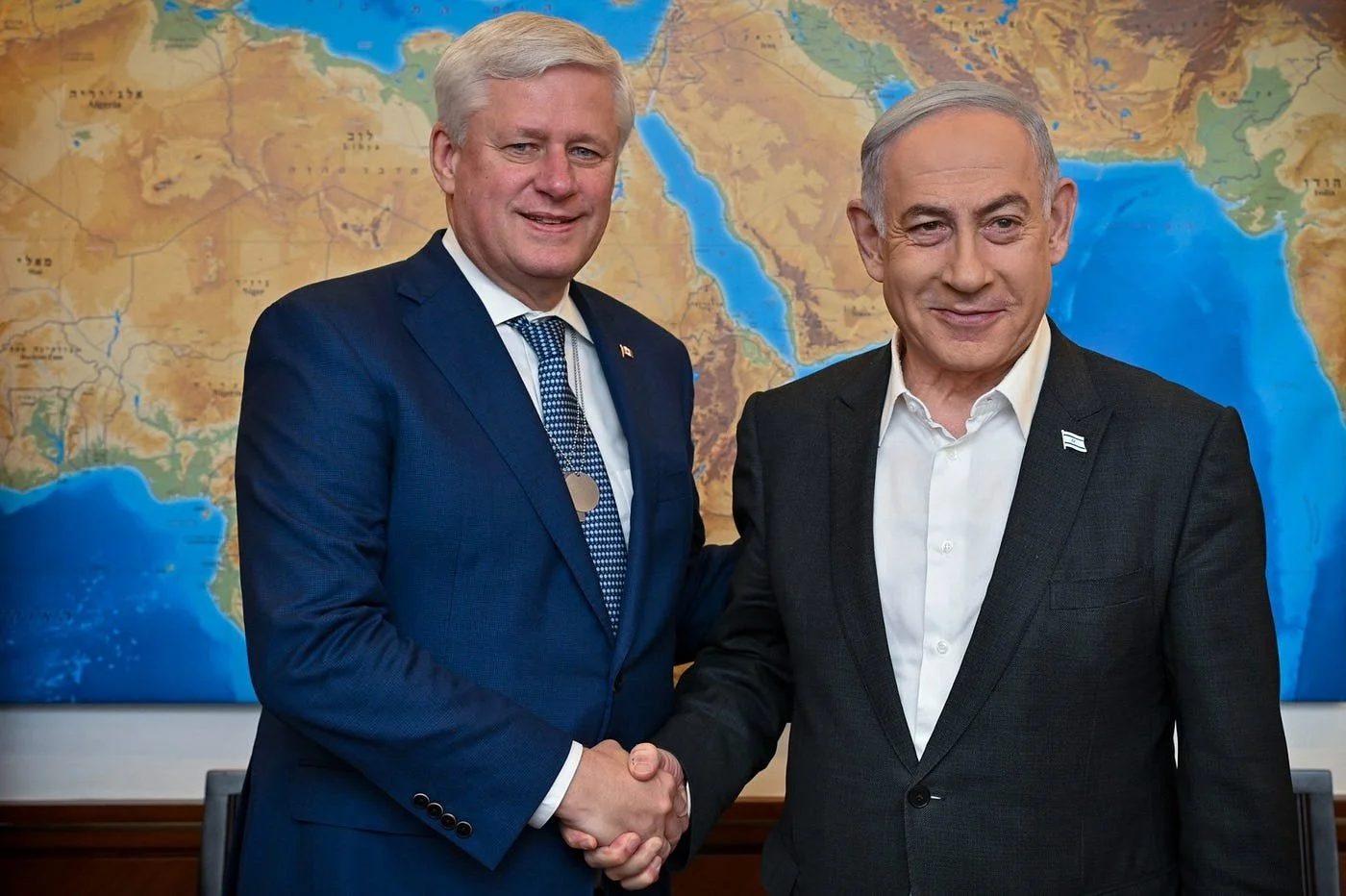 Two genocidal white-supremacist leaders, Stephen Harper and Benjamin Netanyahu.