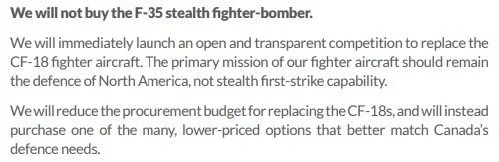 The 2015 Liberals platform promised not to buy F-35 jets.